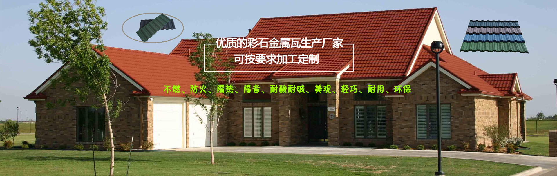 我們是一家彩石金屬瓦設(shè)備、設(shè)計(jì)、制造、銷售、安裝及服務(wù)于一體的公司 以過(guò)硬的產(chǎn)品質(zhì)量,優(yōu)惠的產(chǎn)品價(jià)格,令人滿意的銷售服務(wù),贏得您的支持與信賴。 彩石金屬瓦以防腐性能優(yōu)異的鍍鋁鋅鋼板為基板,以耐候性強(qiáng)的丙烯酸樹脂為黏合劑,以彩色天然沙礫為面層的新型屋面材料。